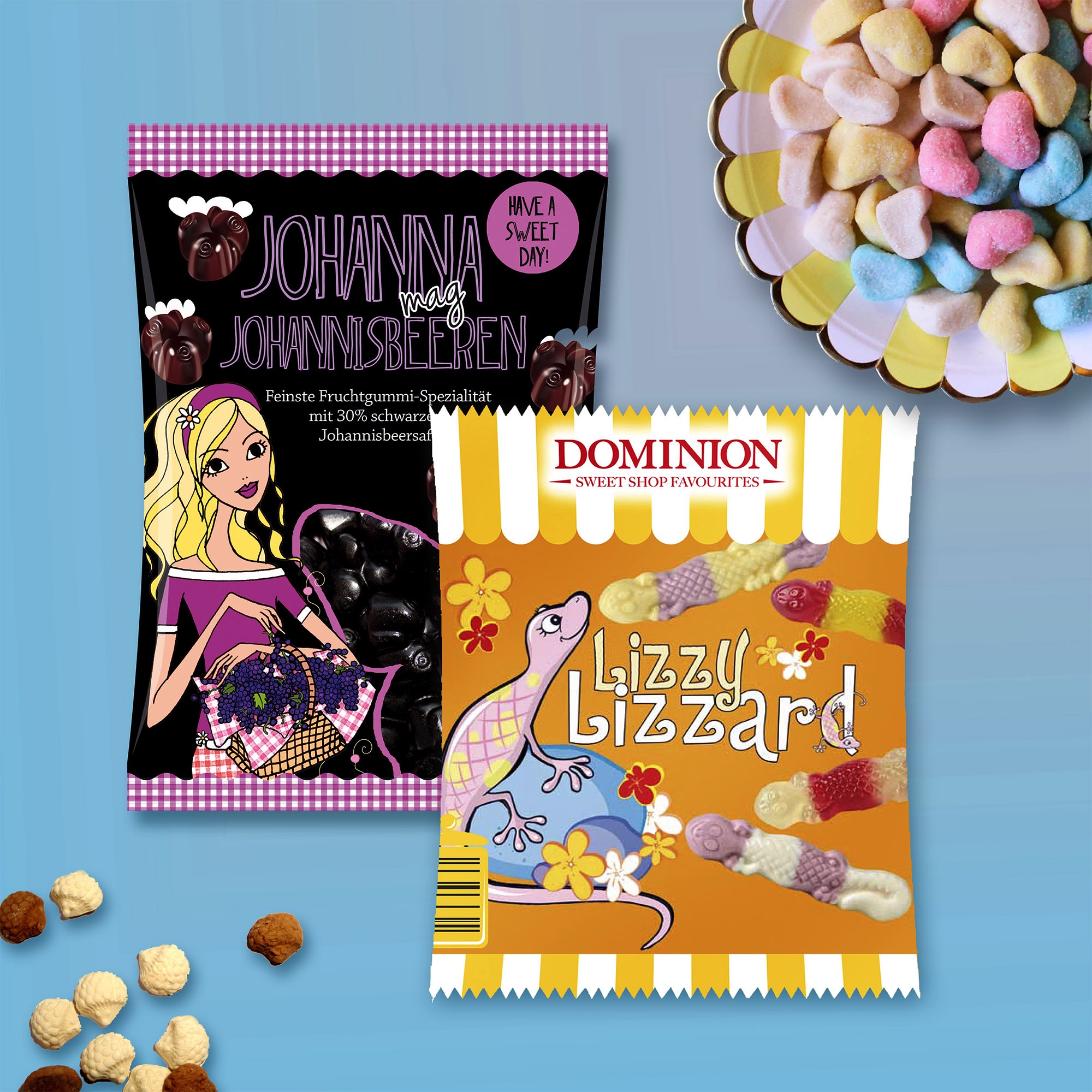 "Johanna liebt Johannisbeeren" ist eine von drei Charakteren, die ich für die Fruchtgummireihe "Have a sweet day" gezeichnet habe.